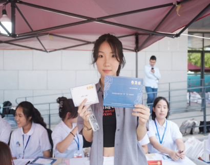 热忱可爱的学长学姐们正在耐心地指导报名流程。纸页翻动,细心讲解,一张张灿烂的笑脸,定格成了秋日最美的图画。